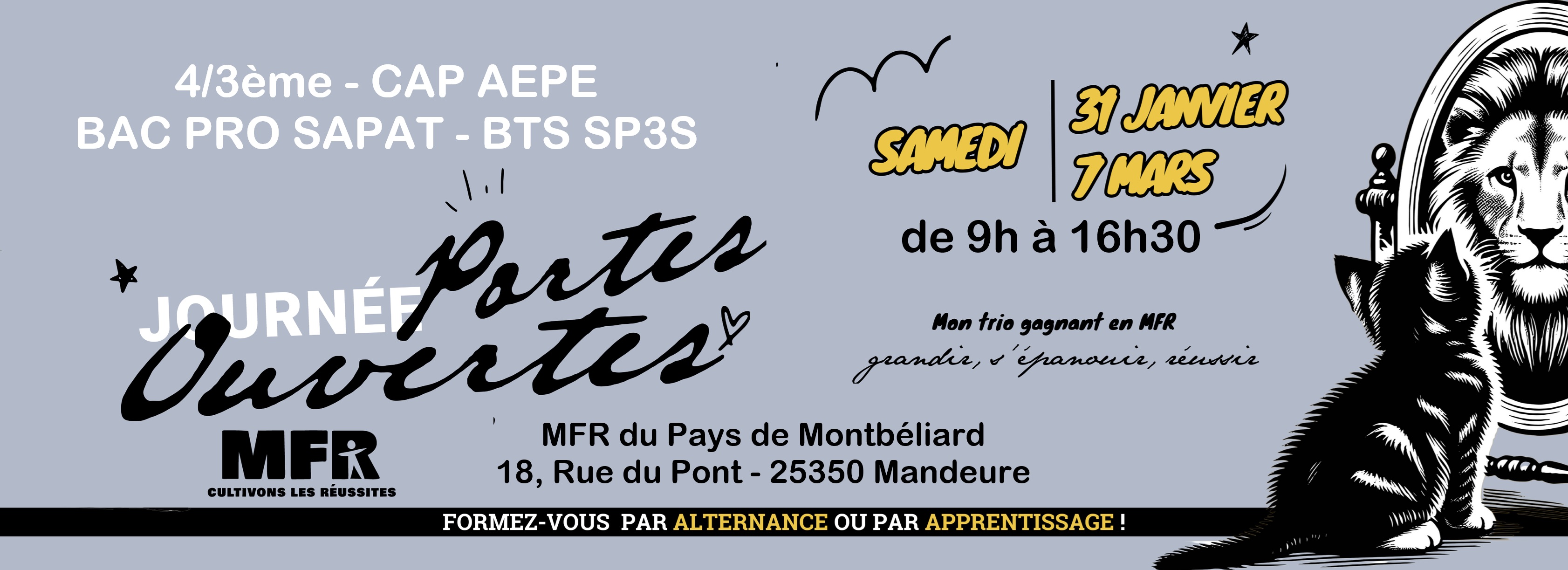 Contact Vous souhaitez une information précise, n'hésitez pas à nous contacter via ce formulaire, nous vous répondrons au plus vite. Nous sommes également joignables par téléphone de 9h00 à 17h00 du lundi au vendredi. Le mercredi de 14h à 17h. Les informations recueillies dans le formulaire sont enregistrées pour traiter votre demande de renseignements. Vous disposez d’un droit d’accès, de rectification, d’opposition, de limitation au traitement et d’effacement. Pour toute demande, nous contacter à l’adresse suivante : dpo.mandeure@mfr.asso.fr